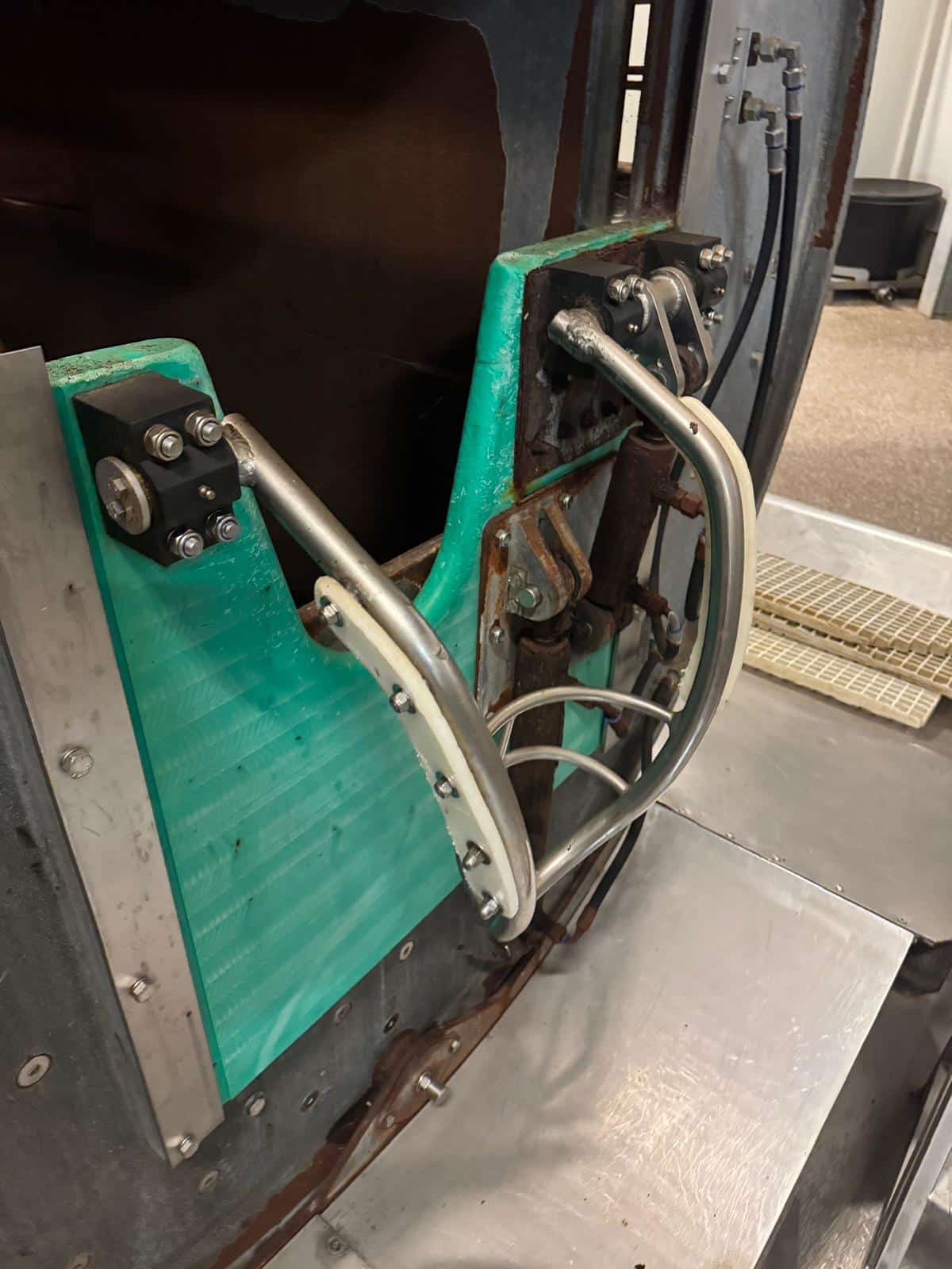We offer a ritual killing box designed for efficiency, safety, and animal welfare in slaughter lines. The box is equipped with a motor-driven system that allows a smooth 180-degree rotation, providing optimal access to the animal’s neck for a precise and hygienic cut.